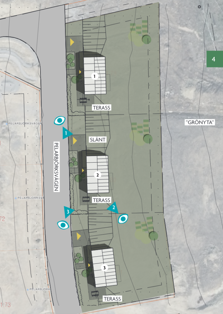 Markanvisningen gäller totalt sex tomter, nedan redovisas förslag på byggnation till fastigheterna 1:79-1:81.