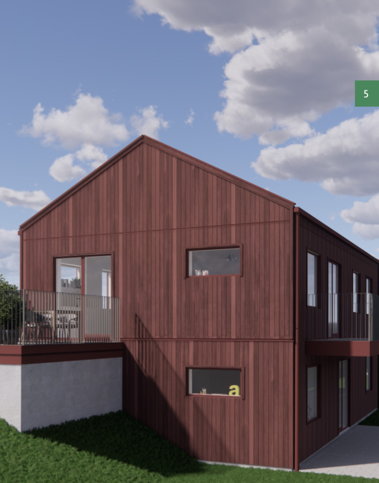 Målet är att skapa ett enhetligt utryck med attraktiva och välplanerade bostadshus. Husen ska ha en boyta på cirka 160 m2 med en naturnära färgsättning och materialval.