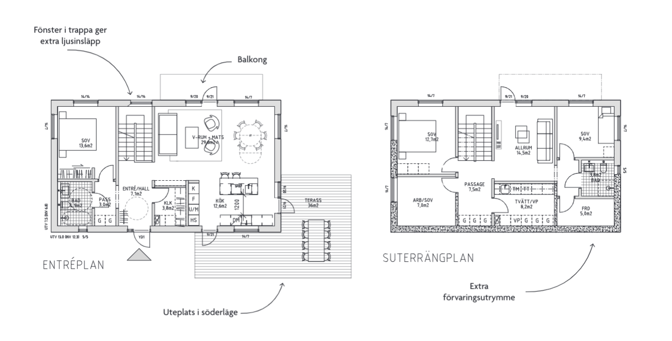 Suterränghusen får en generös planlösning med 4 sovrum.