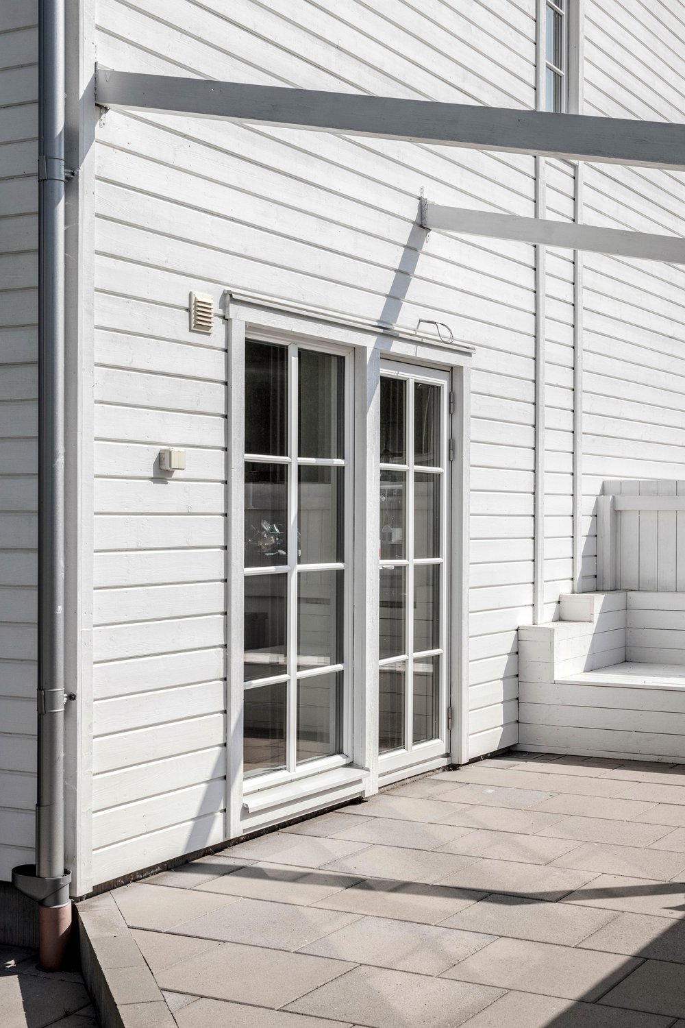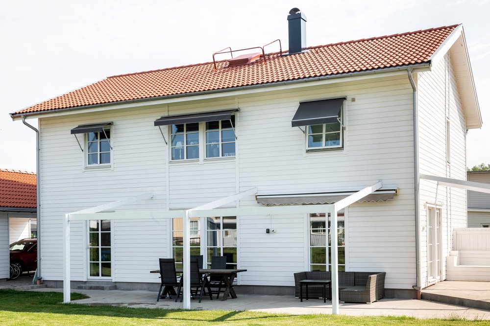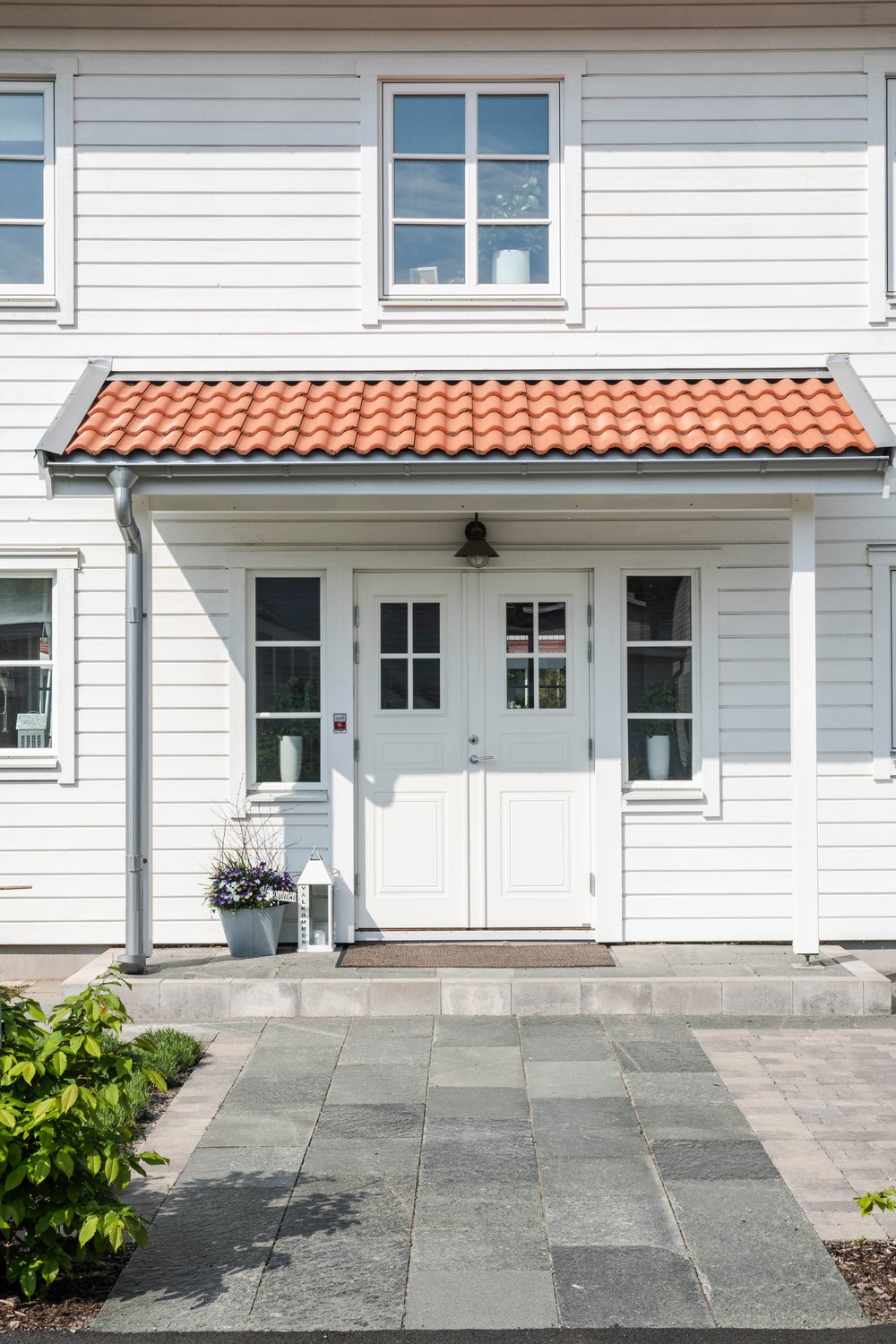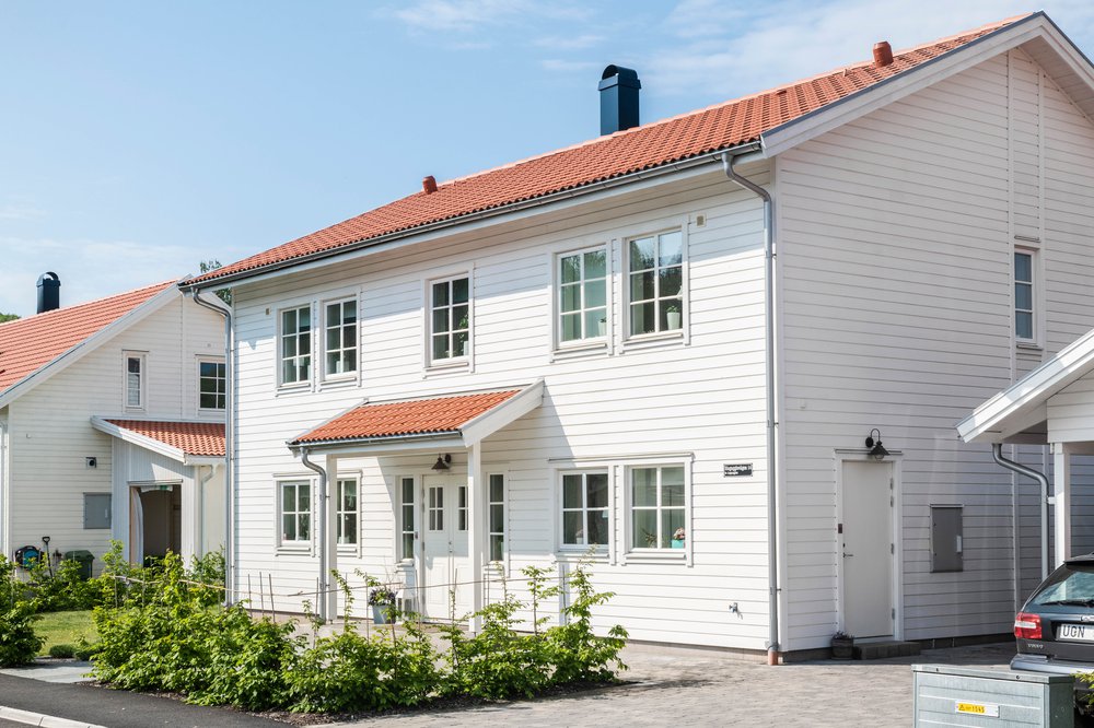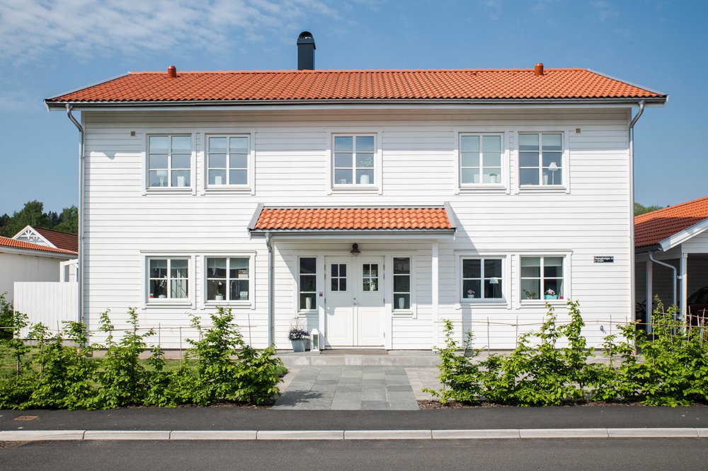 Huset är välplanerat och man har tagit vara på alla kvadratmeter. Huset ser stort och gediget ut och med de här spröjsen skapar man en New England känsla. Alla fyra sovrummen är placerade på övre plan. På entréplan finns kök, vardagsrum, badrum och tvätt. Här har man även ett kontor med utgång till baksidan men vill man så kan man få ett ännu större vardagsrum.